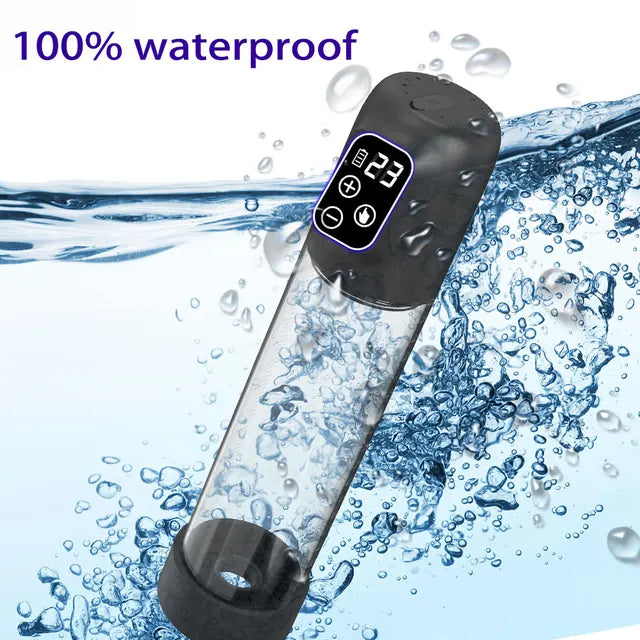 Unwind and enhance your manhood with our Water-Based Automatic Pump! Experience 3 sucking and 4 training modes, and get a larger penis while relieving stress. With 8-inch insertable length, this pump is perfect for long-term usage. Guaranteed safety and quality made with CE certifications and IPX7 waterproof design, enjoy the benefits of penis enlargement. Elevate your self-care game now!